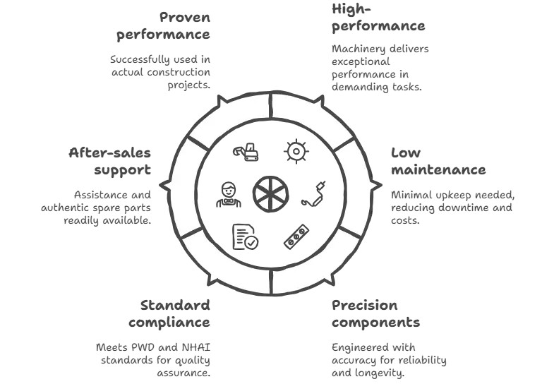 A reputed construction equipment manufacturer in India plays a major role throughout the project lifecycle. Contractors and government teams consider: